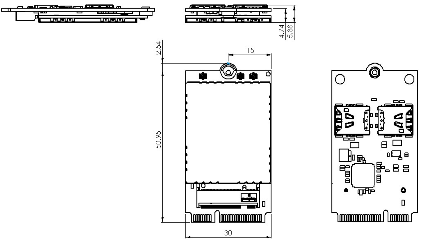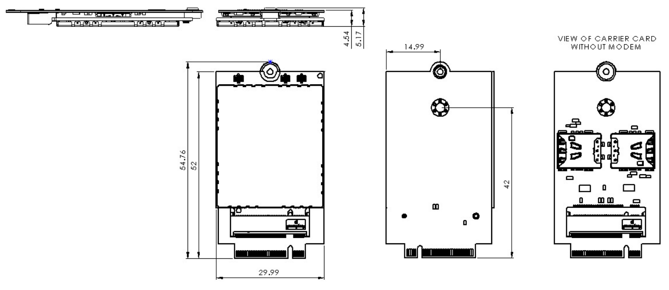 * The mPCIe and M.2 carrier boards have the SIM slots on the top. Removing the card is not necessarily required.