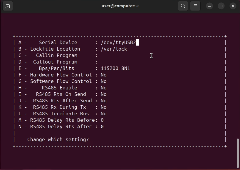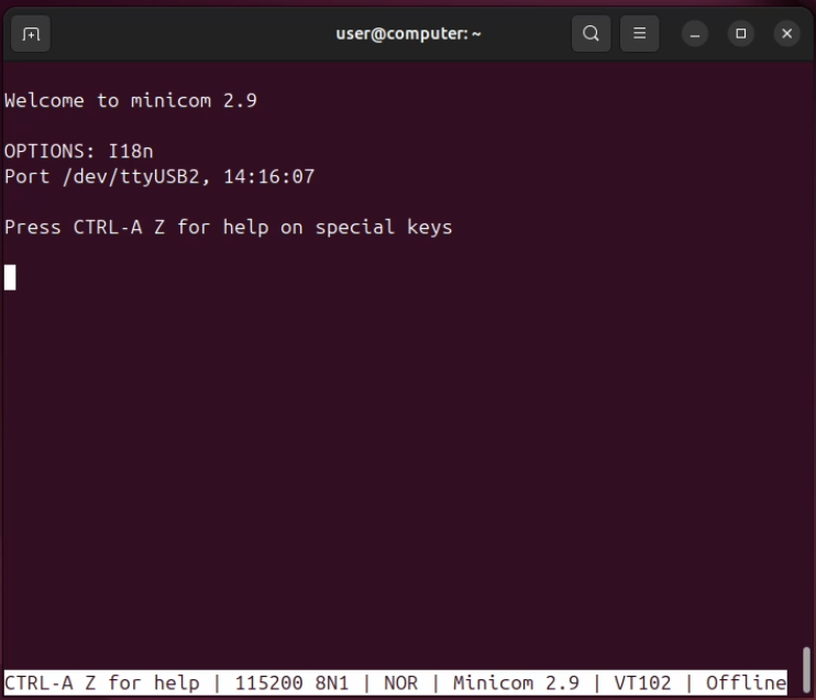 * If no connection is established after 5 minutes, open Putty and run the following 2 commands. Note that the COM port number may change after switching firmware. You may need to check /dev and adjust Putty accordingly.