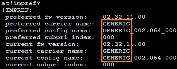 * In the example above, the generic firmware is loaded. The carrier specific firmware should be used instead.