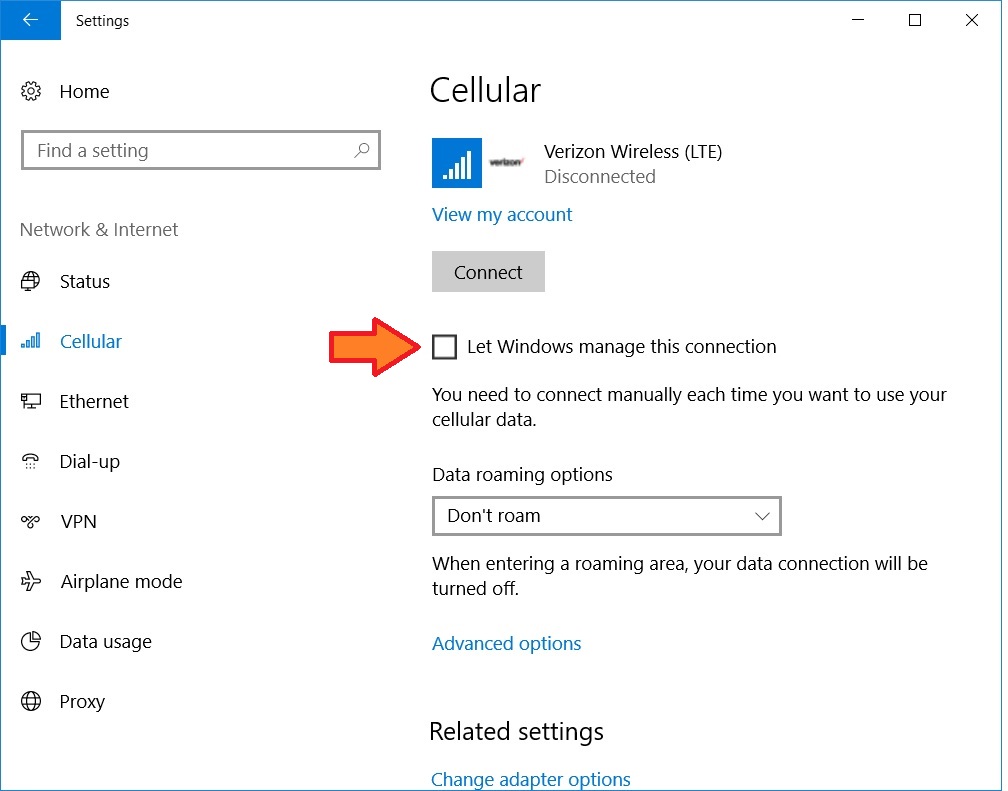 You will need to Disable the setting that allows Windows to manage the Cellular connection.