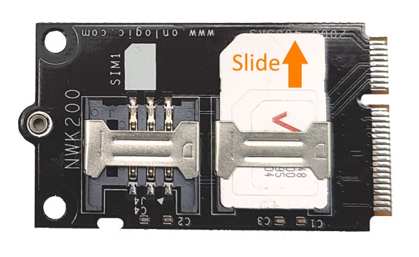 The modem is installed into a carrier board. The carrier boards host x2 nano-SIM slots, which are located on the top of the board. This is the default location to install a SIM card, and OnLogic installs all SIM cards here by default.