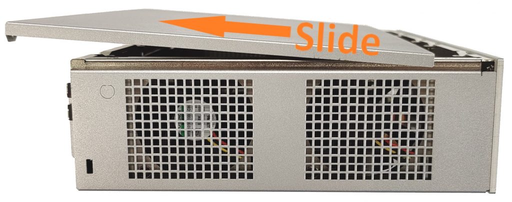 The case is very simple to open. To do so, remove the two screws from the back and slide the lid off towards the rear.