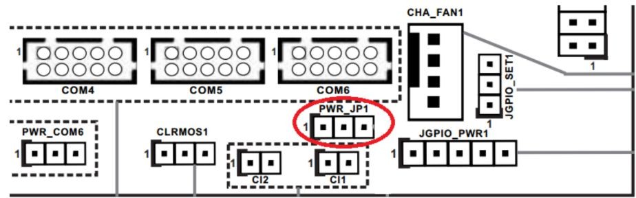 ● Locate the PWR\_JP1 jumper indicated by the\