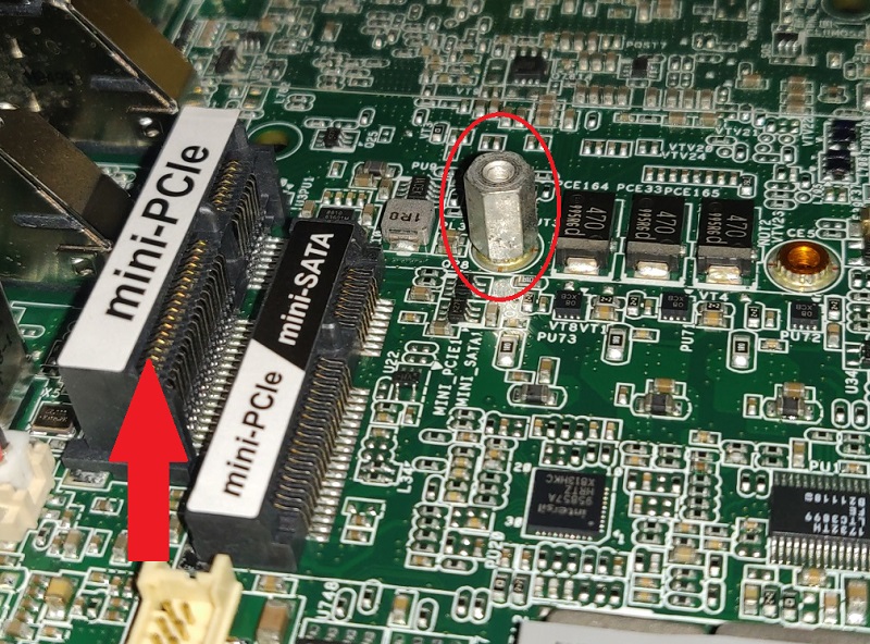 Insert the WiFi card into the mini-PCIe slot at a 45 degree angle.