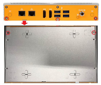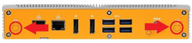 Attach the antenna cables to the WiFi card. OnLogic standard is to connect the leftmost antenna cable to Main, the and the rightmost to AUX – with the rear of the system facing you right side up.