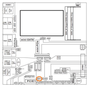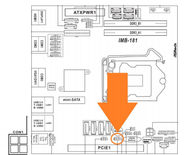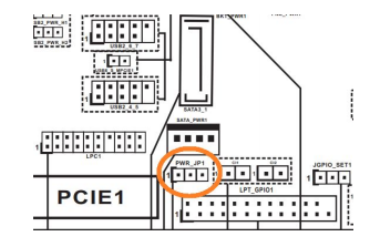 1. Locate the PWR\_JP1 jumper indicated by the orange circle.