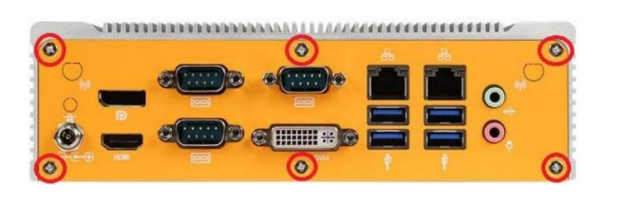 3. Remove the standoffs from the COM ports and the DC jack nut (if applicable) as shown below:
