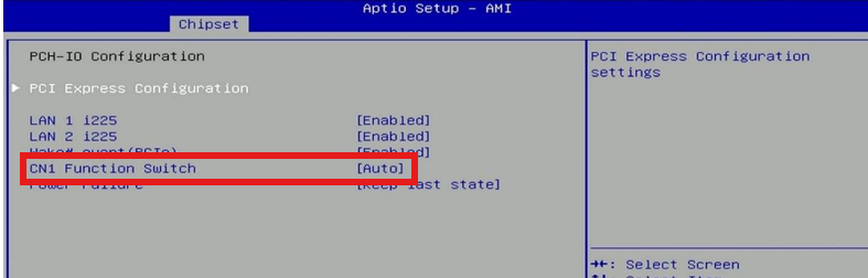 1. Go to **Chipset -> PCH-IO Configuration -> CN1 Function Switch** -> Set this to “**mSATA**“
