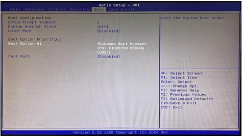 2. If there is no OS listed under Boot Option #1, this indicates that there is no OS on the SSD or the installed OS is not in UEFI mode. An OS installation is required.&#x20;