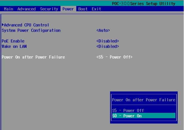 3. Change the “Power On after Power Failure” option to “S0-Power On”