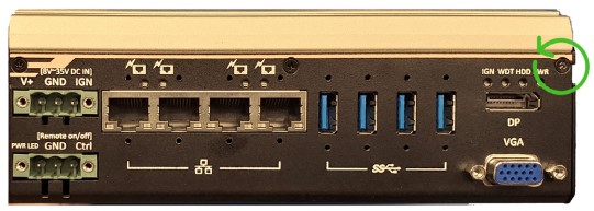 The auto power on feature will turn the POC-500 system back on after a power loss. This can be useful for automatic recovery after a power outage, or applications where the system’s power button is not easily accessible.