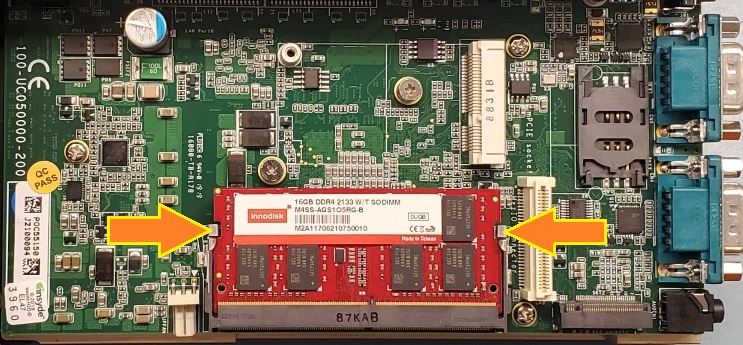 * Remove the RAM by gently pressing the two metal clips outward away from the RAM.