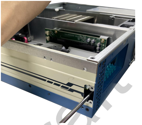 Secure the PCIe card panel with a screw through the trap door