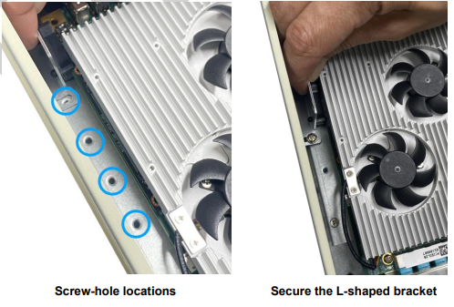 Secure at least one L-shape bracket towards the middle or mid-rear end of the PCIe card to complete the add-on PCIe card installation.