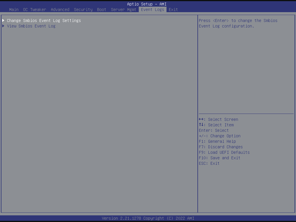 This allows you to configure the Smbios Event Log Settings. When entering the item, you will see the followings: