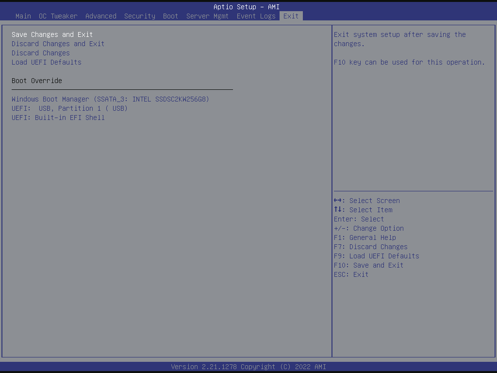 When you select this option, the following message “Save configuration changes and exit setup?” will pop-out. Press key or select [Yes] to save the changes and exit the UEFI SETUP UTILITY.