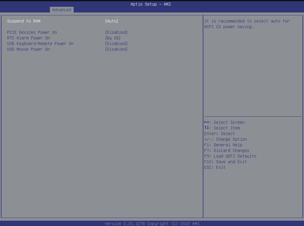 This allows you to set the power state after an unexpected AC/power loss. If [Power Off] is selected, the AC/power remains off when the power recovers. If [Power On] is selected, the AC/power resumes and the system starts to boot up when the power recovers. If [Last State] is selected, it will recover to the state before AC/power loss.