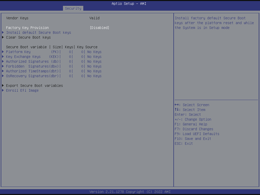 Load UEFI default values for all the setup questions. F9 key can be used for this operation.