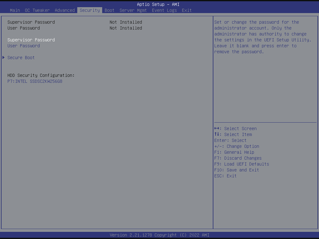 Once you enter the UEFI SETUP UTILITY, the Main screen will appear and display the system overview. The Main screen provides system overview information and allows you to set the system time and date.