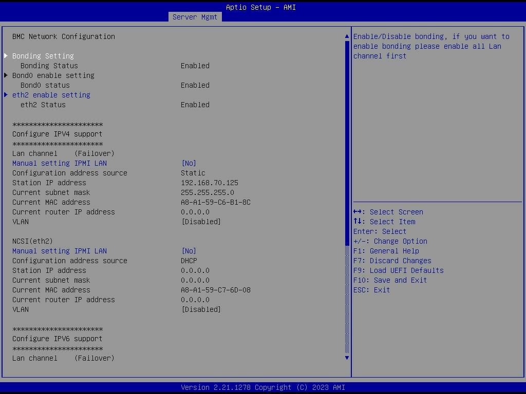Select to configure BMC network parameters statically or dynamically(by BIOS or BMC). Configuration options: [Static] and [DHCP].