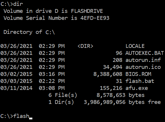 * Copy any files you will need in DOS to the flash drive. If you are applying a BIOS update, copy those files now.