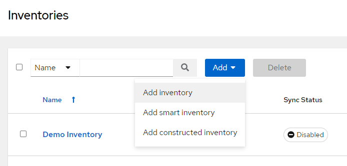 2\. Click “Add” and click on the “Inventories” tab in the main navigation menu. This will take you to the inventories management page.