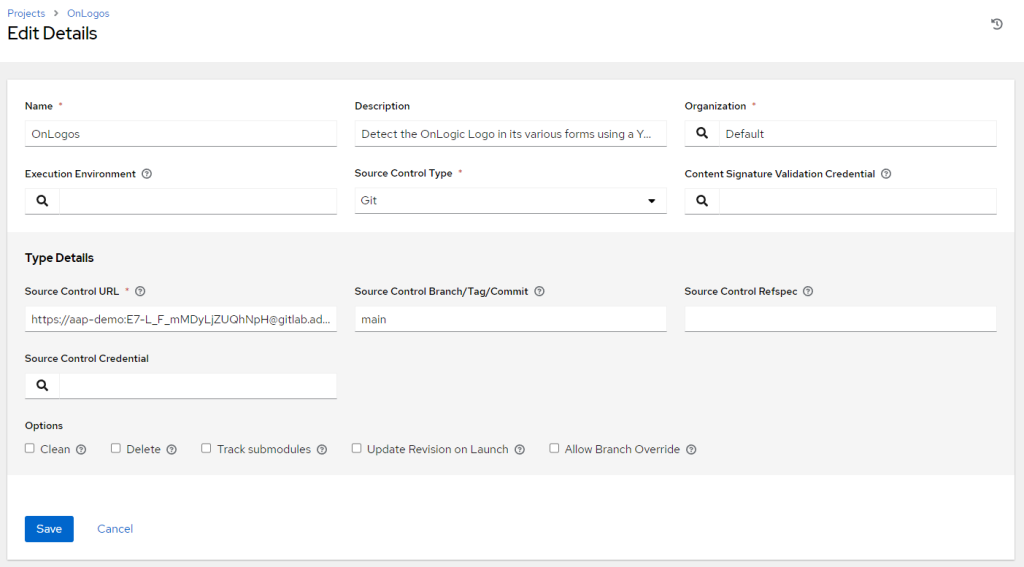 6\. Save the project configuration and initiate the sync process to pull in the content from the Git repository. Verify the successful import of playbooks and roles within the Ansible Automation Platform interface.