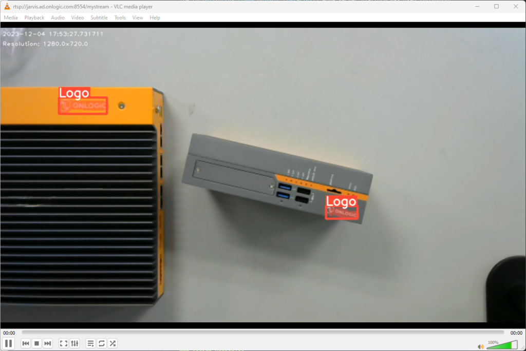 Confirming our application is loaded on the HX401, here is a view of the stream from VLC, demonstrating that both the RTSP container and the vision application have deployed successfully!