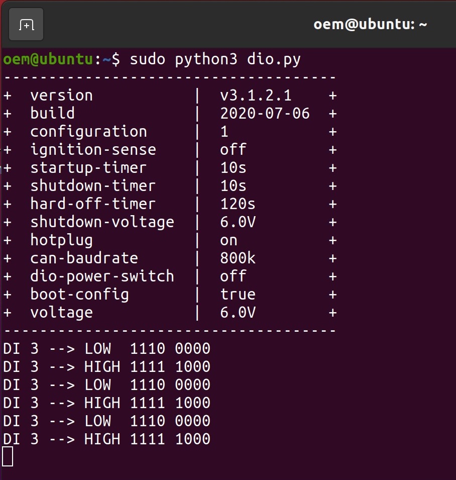To validate the input is working, the [karbon CLI utility](https://support.onlogic.com/onlogic-systems/rugged/karbon-series/karbon-series-using-the-serial-interface/) can be run to monitor the behavior of the inputs and outputs.