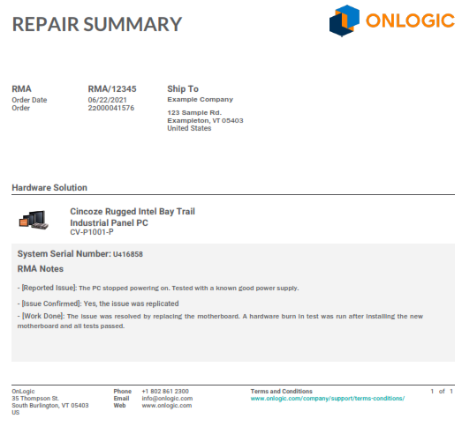 Upon arrival at OnLogic, repairs are typically completed within 5 business days.