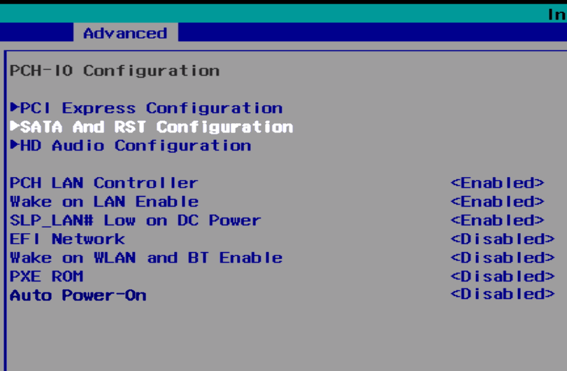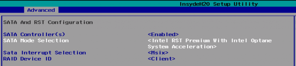 * Open the “SATA And RST Configuration” submenu
