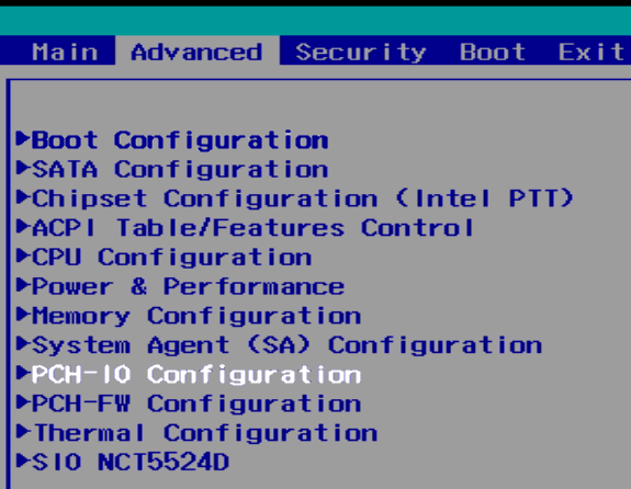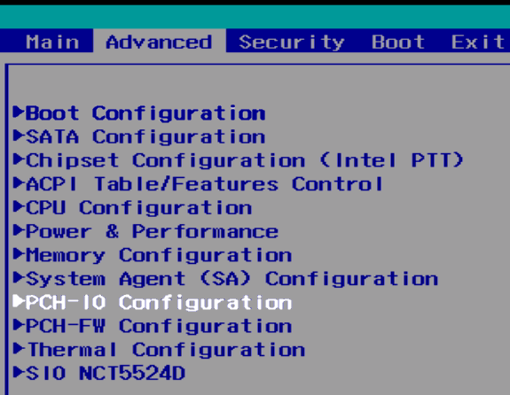 * From the “Advanced” tab, open the PCH-IO” Configuration” menu