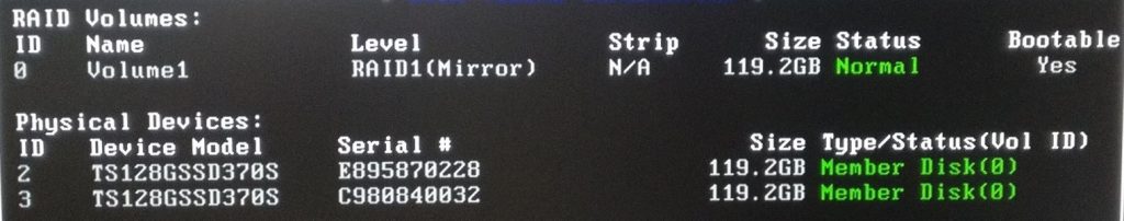 * You will be taken back to the main screen and your new RAID volume will be visible.