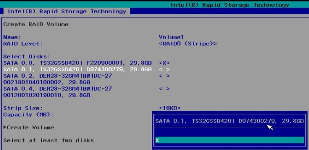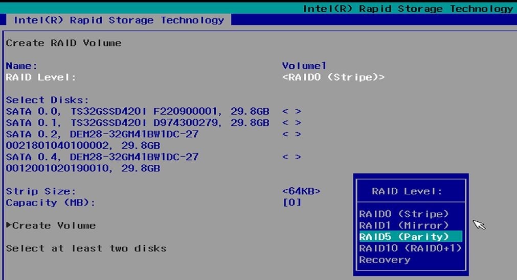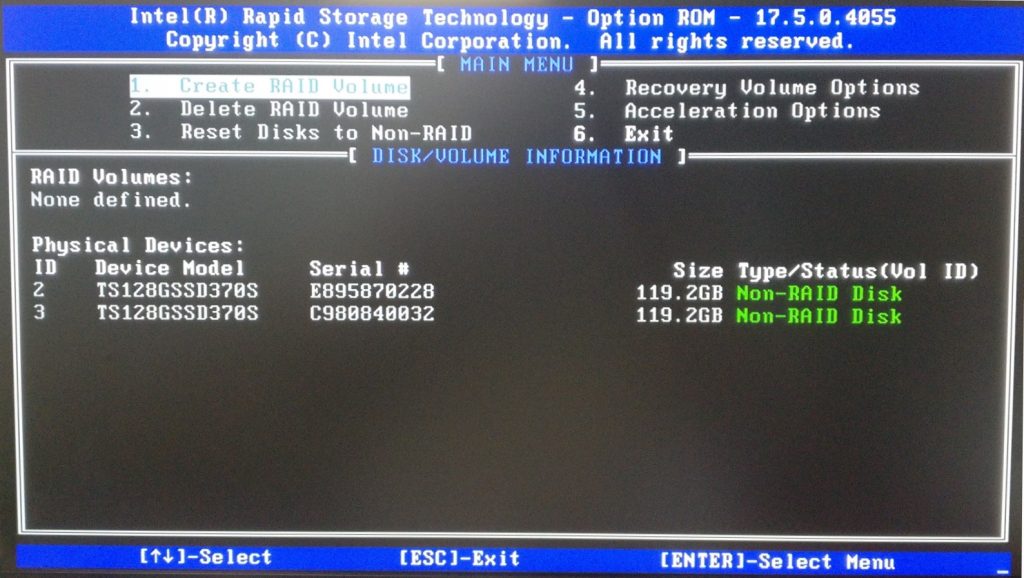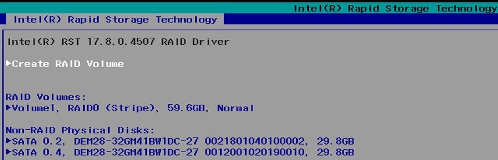 #### Intel(R) Rapid Storage Technology Menu <a href="#intelr-rapid-storage-technology-menu" id="intelr-rapid-storage-technology-menu"></a>