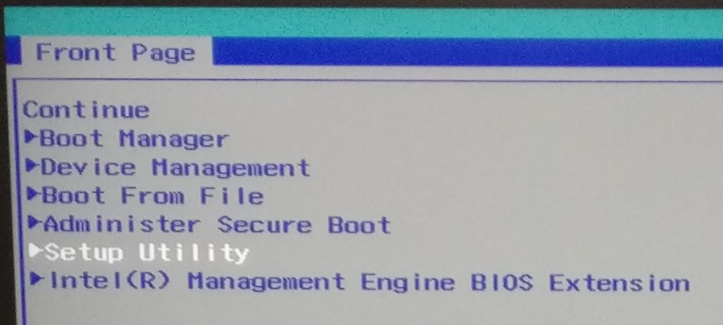 * Using the arrow keys, navigate down to “Setup Utility” and press enter