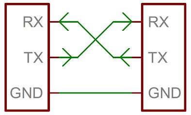 Using the pinout of the two devices, verify that the cable is connecting Tx to Rx and also connecting ground.