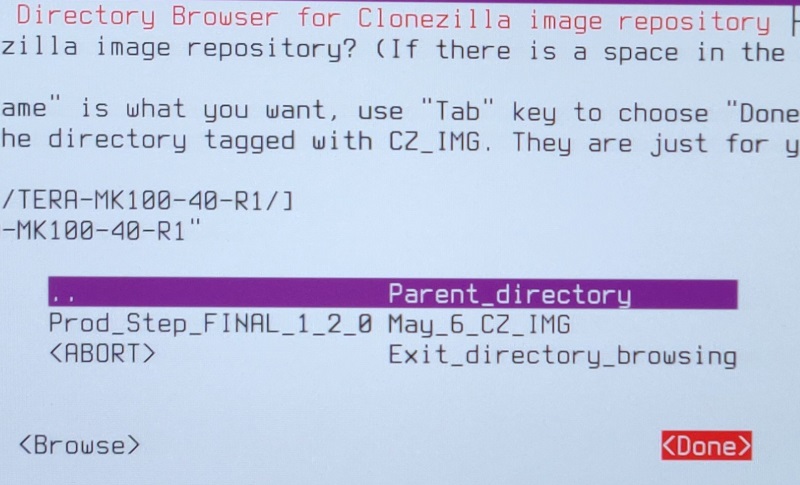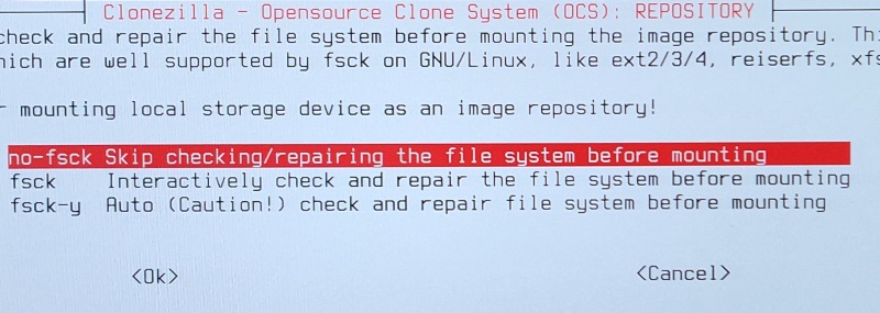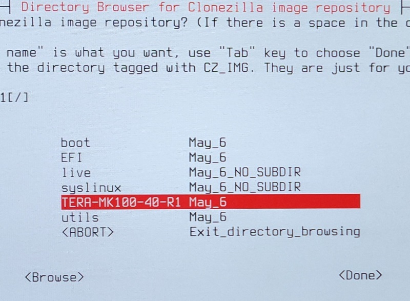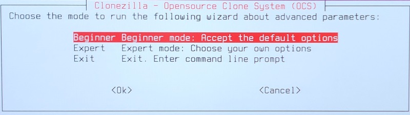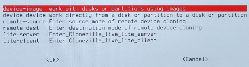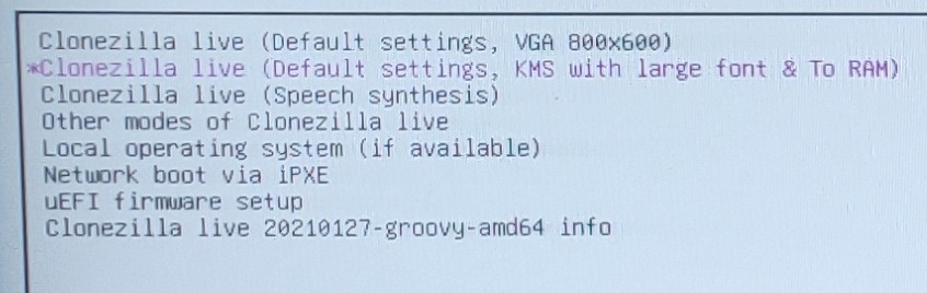 * Select the 2nd option at the Clonezilla boot menu (ending with “& To RAM”)