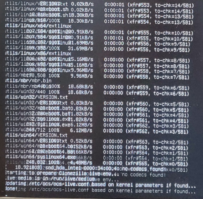 * Some unimportant text will fly by as Clonezilla boots up