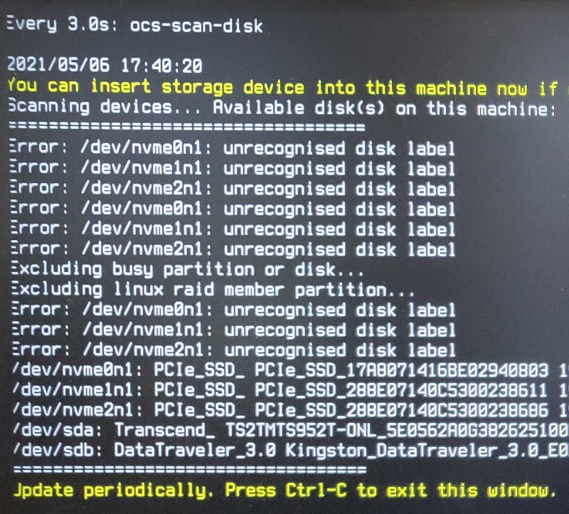 * A list of the disk drives will be printed. This can be helpful for reference but can usually be ignored. Press control-C to close it.