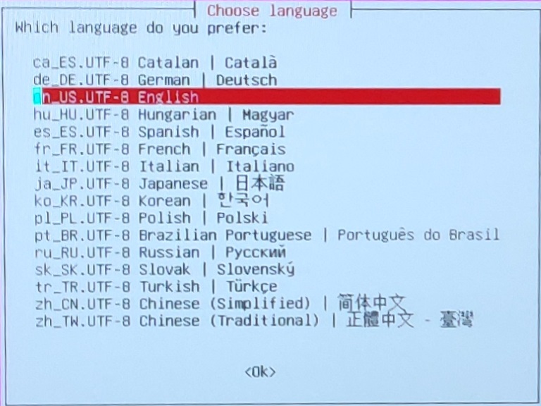 * Press enter to select Language.