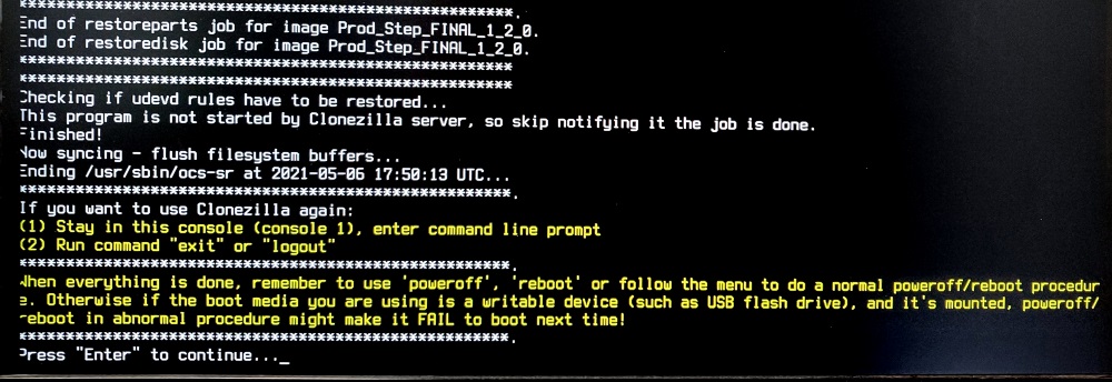 * Success! The image has been applied. Press enter to continue as the prompt on the screen says.