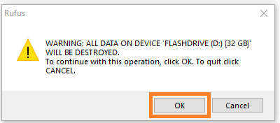 * Click OK. This will erase your flash drive and turn it into an Ubuntu installer.