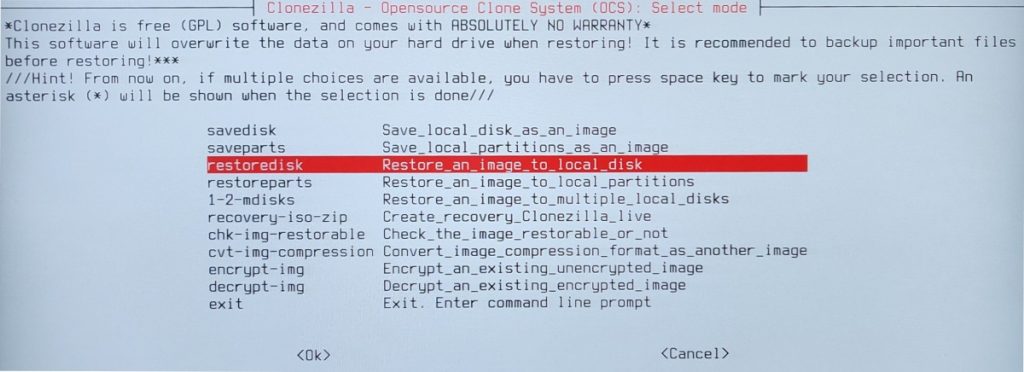 # Clonezilla Image Restoration