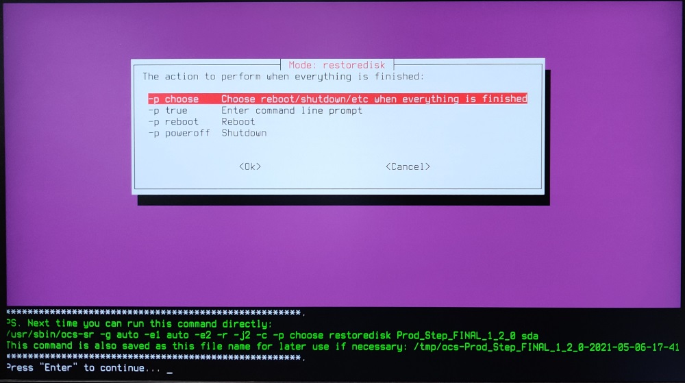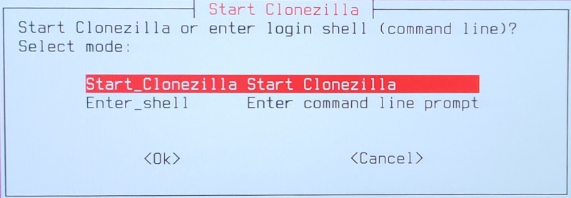* Press enter to start Clonezilla