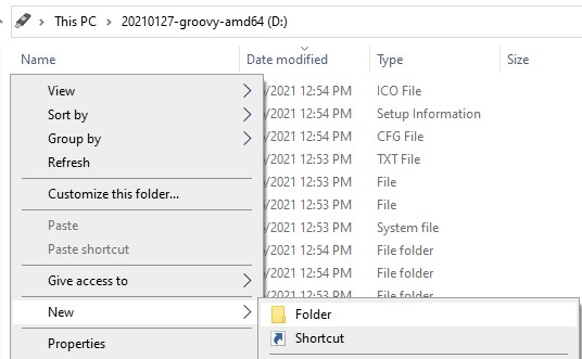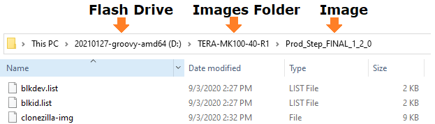 * Create a new folder on the flash drive to contain your images. It must not contain any spaces. In this example, we name it TERA-MK100-40-R1
