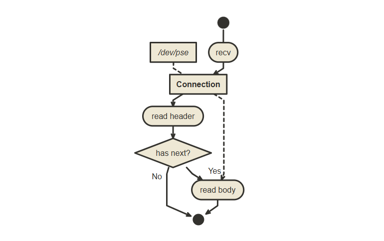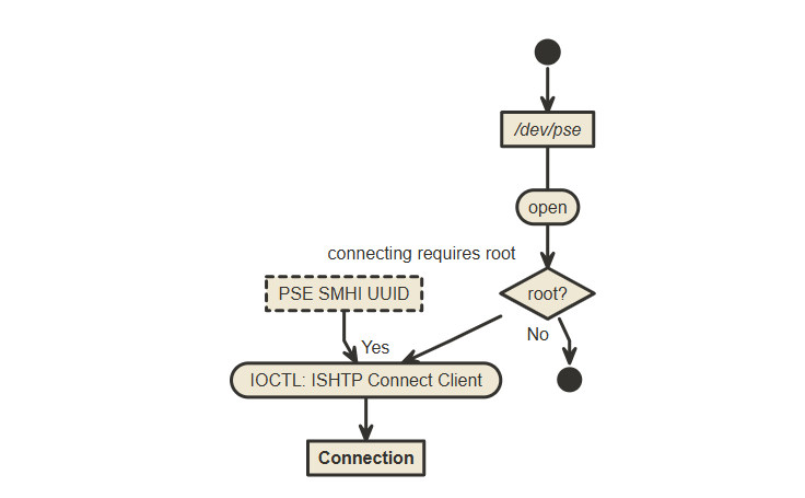 Before communication with the PSE can begin, the host client must establish a connection with the firmware client. This is performed by sending the ‘client connection’ IOCTL to the device file: