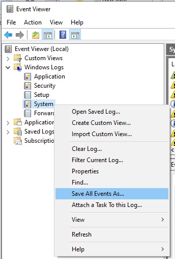 The Windows Event Logs contain a variety of information that can help diagnose crashes and other issues. In some instances, it is helpful to send us a copy of the logs so that we can examine them. This article covers how to do so.