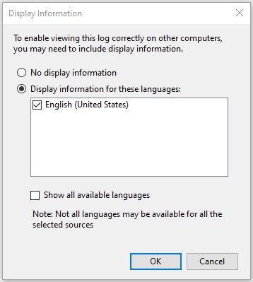 * **Important –** Be sure to select display information and check the English box. Without this, much of the log will be missing data.